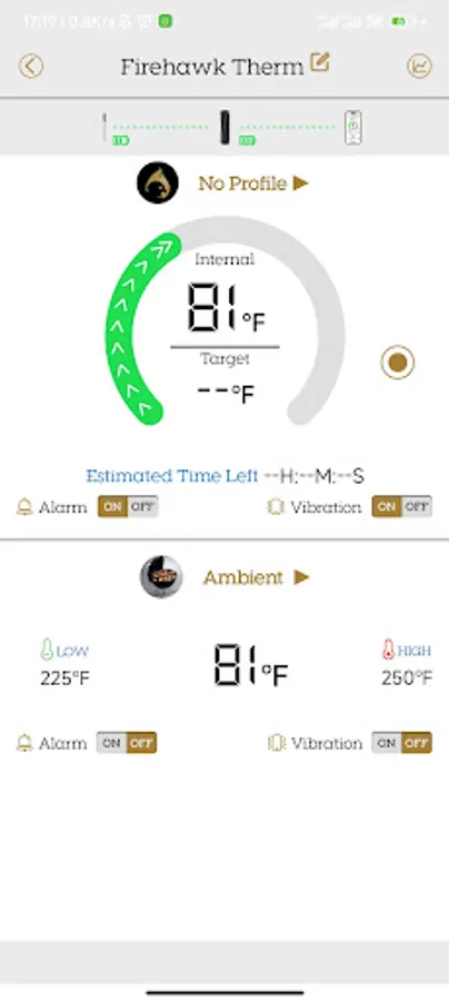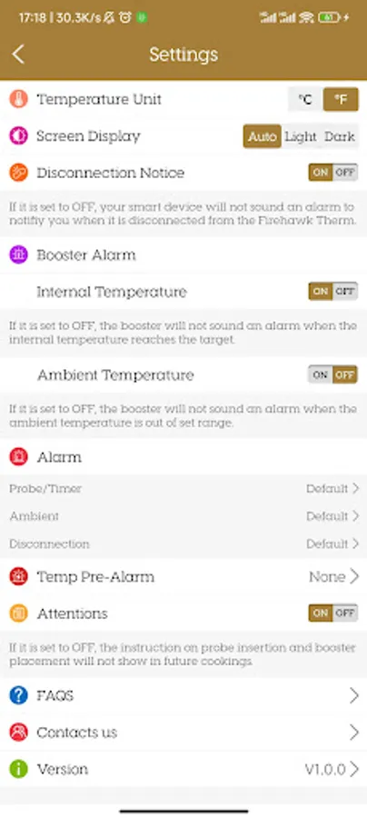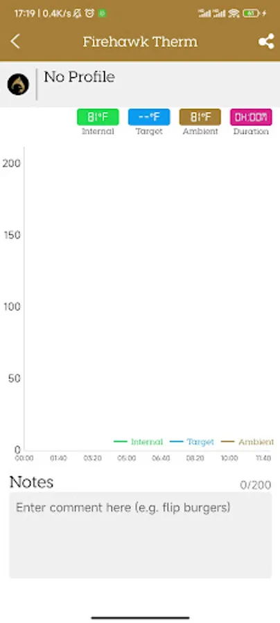 The app communicates with the device via Bluetooth, displays the grill temperature in real time, and allows you to set temperature alarms, statistical temperature change curves, etc.