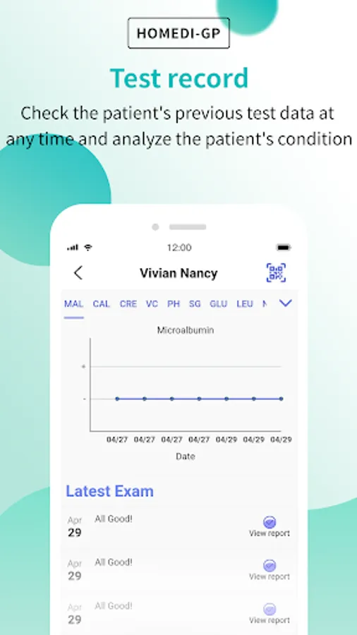Doctors or nurses, etc., can use 「Homedi-GP」 to manage patients, quickly review patient cases, conduct rapid diagnosis and treatment analysis of urine routine test results, manage test records, and provide auxiliary reference for diagnosis and treatment