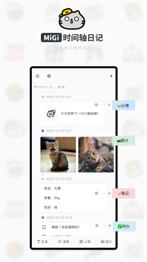 MiGi is a timeline diary, you can record daily fragmented information on MiGi.