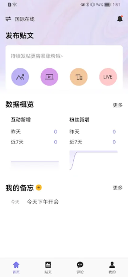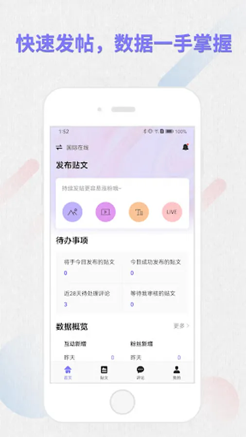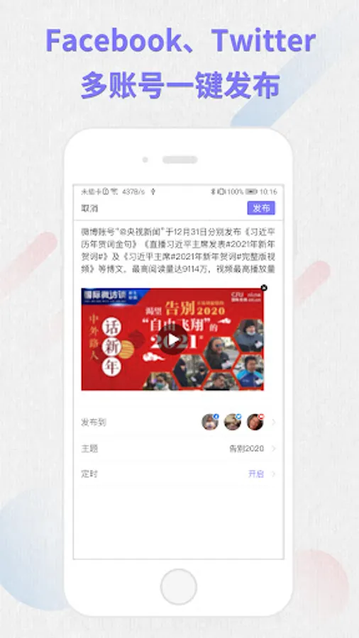 At present, the client mainly supports posting on overseas social platforms (facebook, twitter), and can browse data such as the number of views of posts. Moreover, the client provides the latest international news for reference.