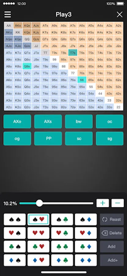 You can save, load, and export scenarios & ranges. And you can also view hand category stats for each of the players or the winning hand.