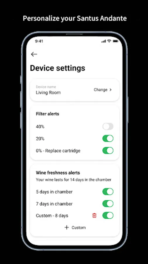 Set up Santus online to remote settings, receive notifications and discover new wines !