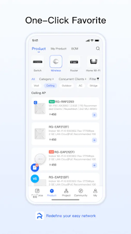 Product: It displays all major products of Ruijie, including AP, switch and gateway. You can quickly select needed models based on the key feature of products.
