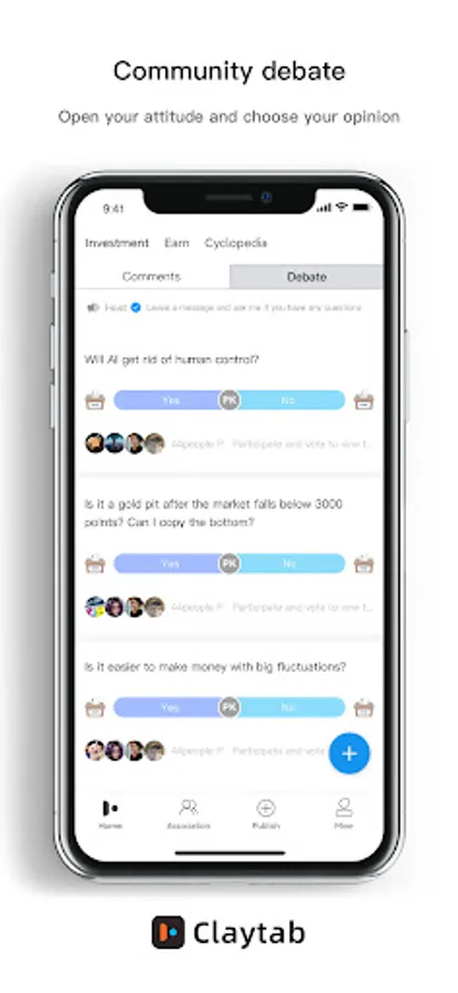 Claytab, an app that teaches you how to make money. Provide you with information and advice on investing in finance, stock funds, cryptocurrencies, NFT, making money online, starting a business online, and part-time jobs. Claytab uses a convenient and easy-to-use platform to collect video content and professional blogs from all over the world, so that users can grasp the current financial market information and new knowledge in a timely manner, and try to use these knowledge to create better investment theories. In addition, players from all over the world can connect with social media on the Claytab to have real-time discussions and exchange views. Claytab have strong professional value to dig deep into the trends of the ever-changing financial markets and develop new insights to achieve the best returns on investments. Claytab helps you quickly make money online and obtain your passive income through step-by-step tutorials.