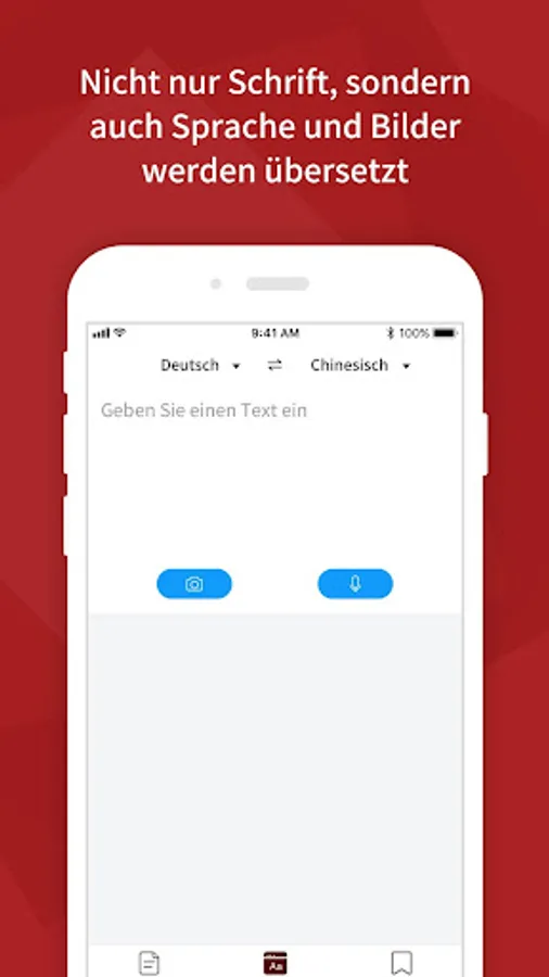-Translator. You can speak words using the microphone symbol and have them translated and read out into Chinese or German. You can also use the camera to scan and translate complex Chinese characters.