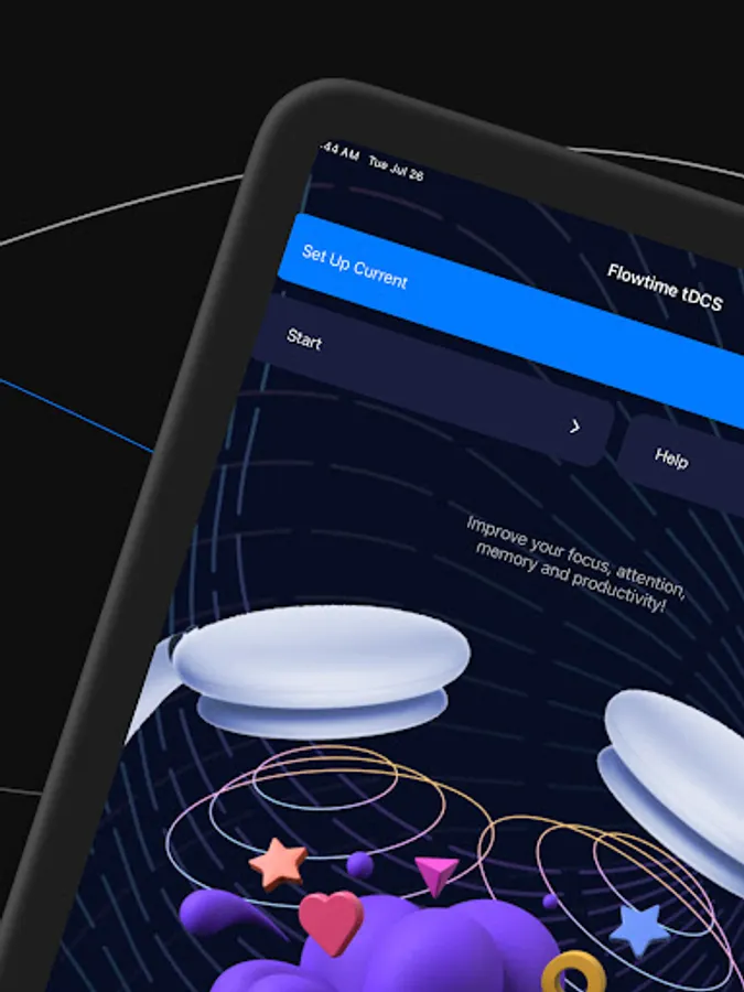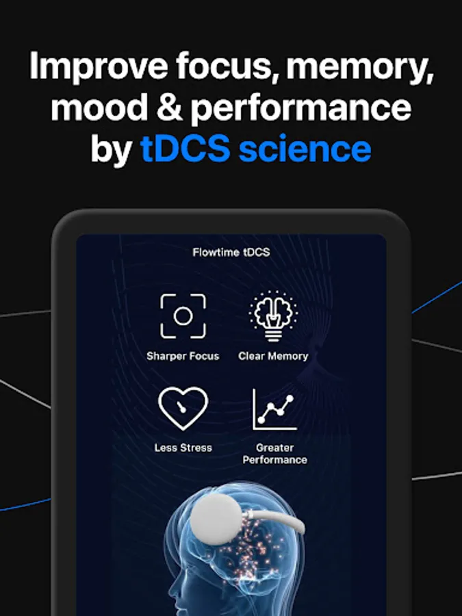 Flowtime tDCS headset, supported by well-studied tDCS science, helps you feel better in 1 minute to have sharper focus, clearer memory, less stress, and greater performance.