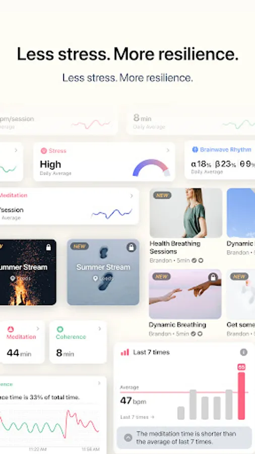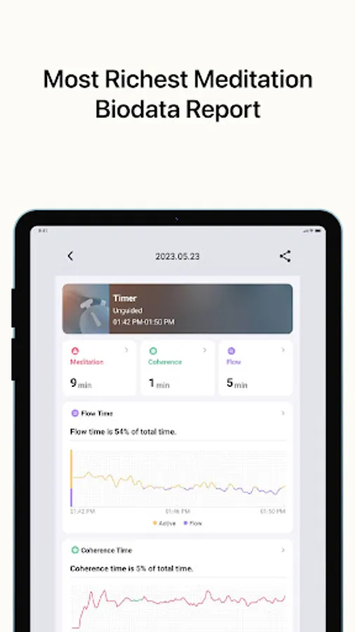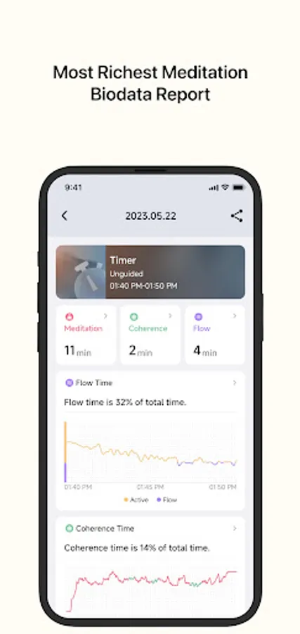 The real-time data matters when you are doing meditation, while rich biodata reports after practice are also crucial to measuring your practice every time and insights into your progress. The sensors passively sense your brain and heart activities, and the app translates them into visualized graphs of your body performance. You will be eager to see how well you perform after you practice.