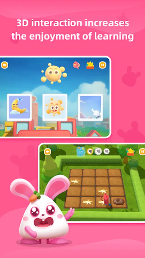 Learning content is set in gamified scenes, giving children the possibility to explore by themselves. In addition, the learning activities are comprehensive, including viewing, recognizing, playing, reading, practicing, and writing characters.