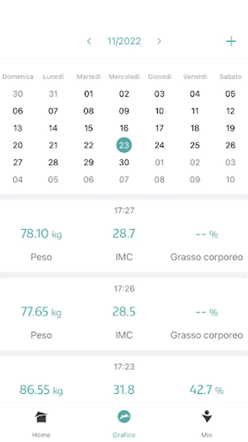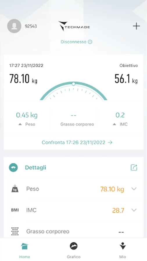 Potrai controllare la salute del tuo corpo: massa corporea, massa muscolare, acqua corporea, peso BMI, grasso e molto altro ancora.