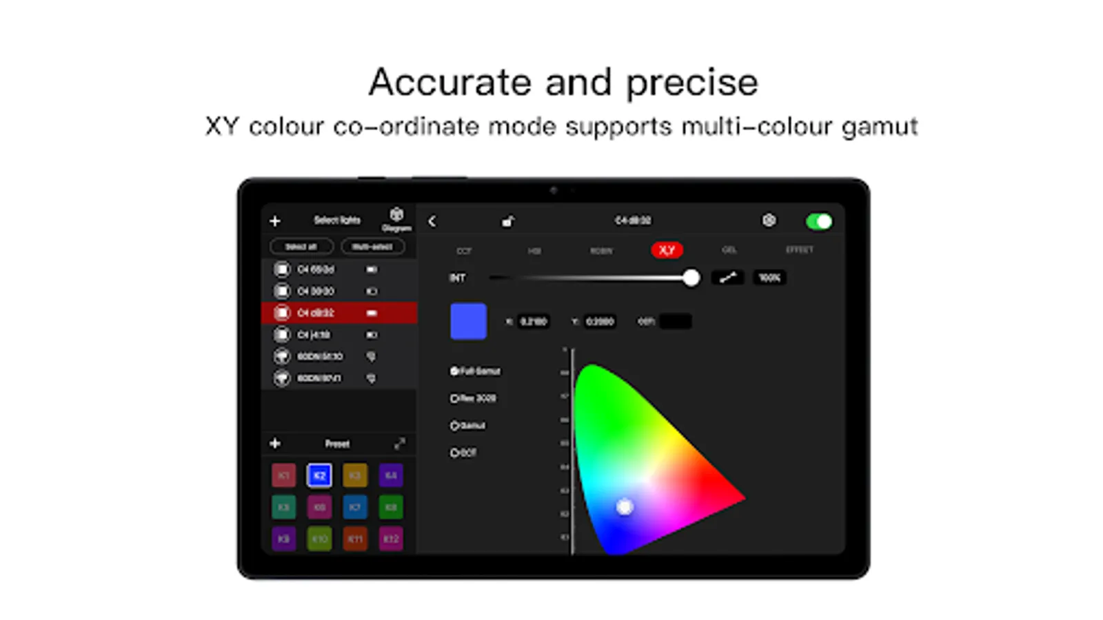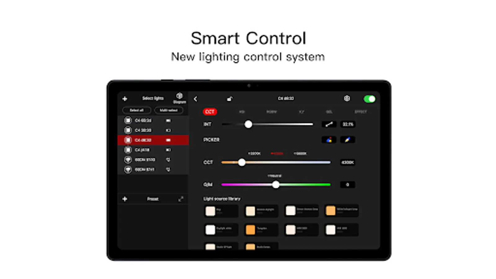 The iFootage Lumin App connects to mobile devices and controls individual and multiple sets of iFootage lights. The App provides complete control and storage of multiple professional lighting sets, applications and functions and supports colour temperature CCT, HSI, RGBW, XY colour co-ordinates, GEL colour paper, special effects, music and lighting pre-set functions. The Lumin App provides a simple and convenient professional support to photographers and videographers helping them to create and control lighting arrangements for a variety of scenarios and situations.