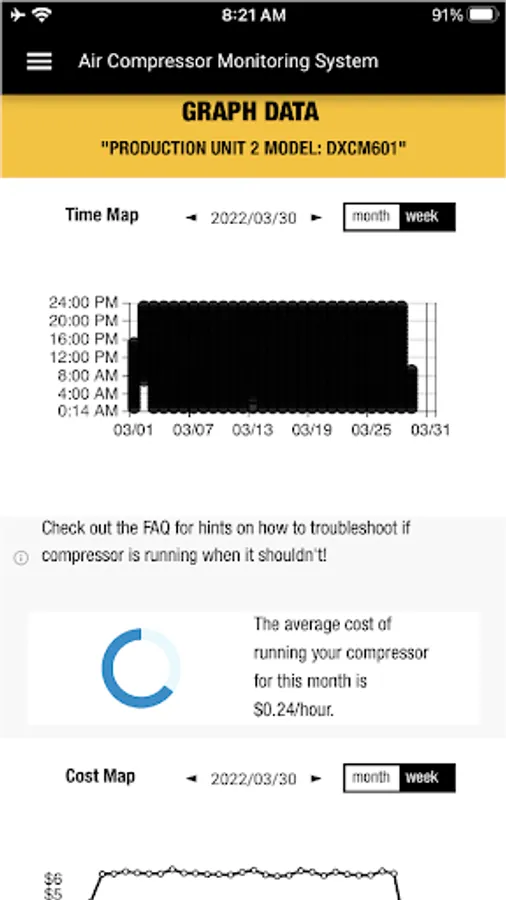 Use your device to monitor the number of hours your air compressor is running and receive maintenance data on your phone.