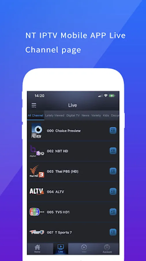 •Smart Play: Enjoy your channels and movie on your TV with Smart Play. When your STB using a same network with your device, you can push the program (both live channel and VOD) to STB to continue playing.
