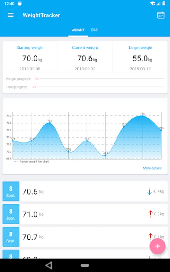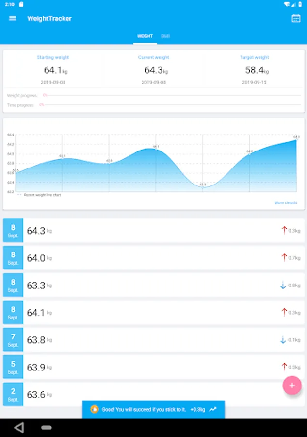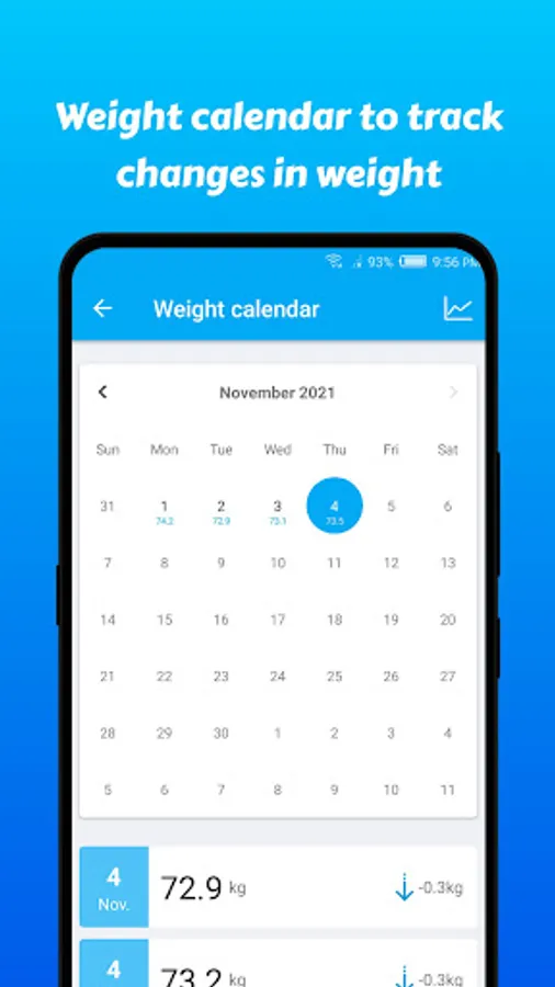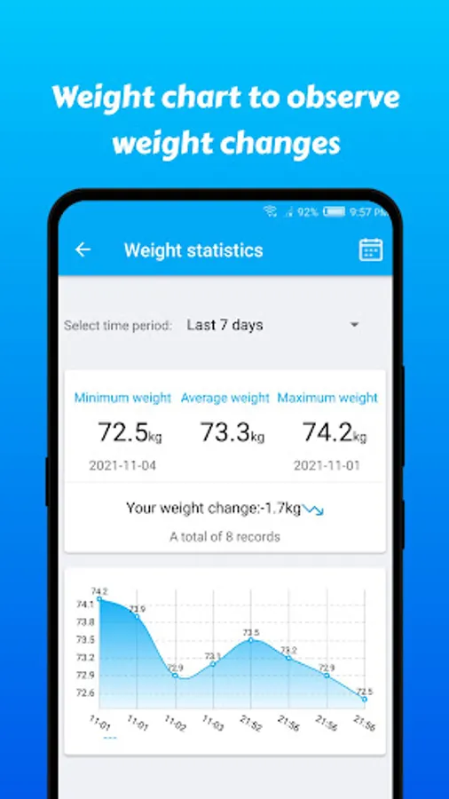 Do you want to lose weight💪❓ Super Weight Tracker helps you achieve your goal🎖. You can set a weight target and record your daily weight changes in the app📝. It also can calculate your BMI automatically, and provide a weight calendar where you can check your progress📅. In addition, you can record exercises and body fat, as well as summarize the weight changes in different time periods(day, week, month...). The information provided by this app will help you exercise better and control your weight. Don't hesitate and download it now.💗