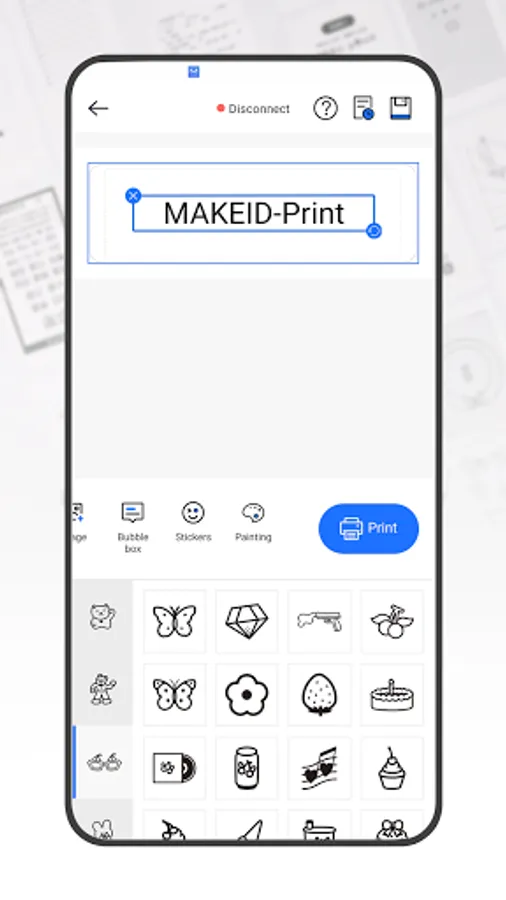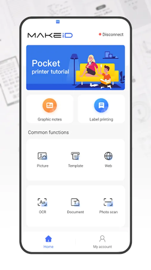 MAKEID-print, as the auxiliary function of pocket printer, connects the pocket printer through Bluetooth, so as to achieve the functions of picture and text notes, label printing, picture printing, template printing, web page printing, character recognition, document printing, photo scanning in app.