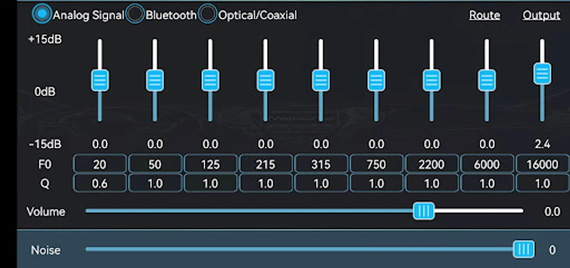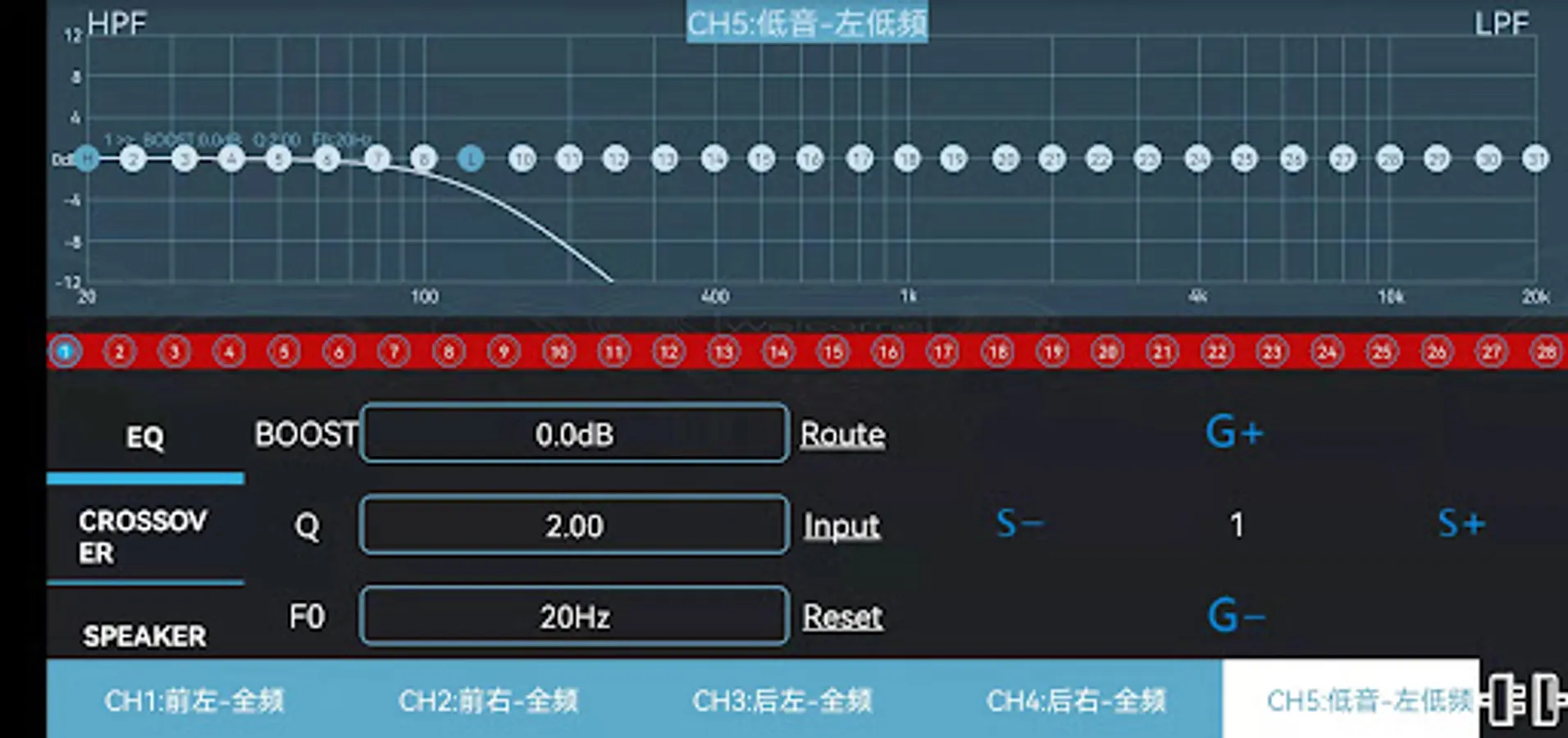 31 band EQ , Gain phase , input and output setting , input EQ setting with 3 different input source. crossover and time alignment.