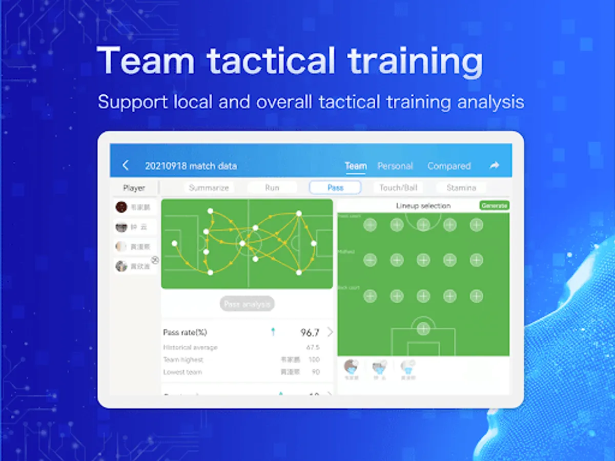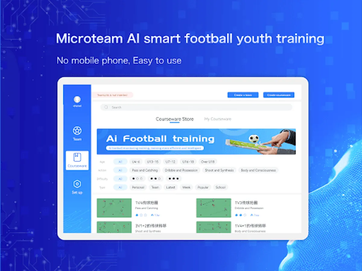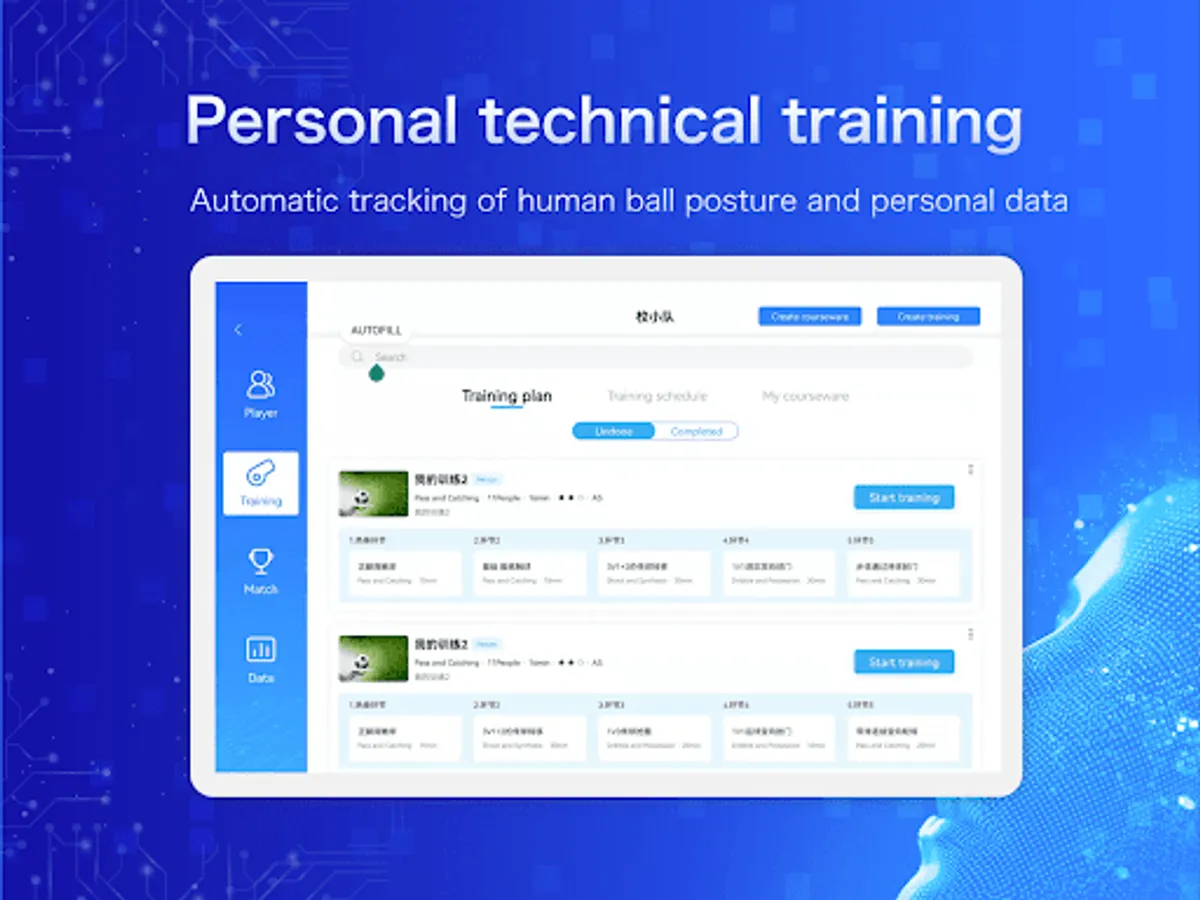 Microteamai football intelligent youth training system uses intelligent AI and technology to instantly obtain the sports status of young football players, automatically track all training actions and competition process data of each player, and form evaluation and analysis, so that players can integrate fragmented time and get rid of time constraints. Let football become their closest playmate; Provide personalized feedback through pad anytime and anywhere to promote teenagers' Sports growth; It also has rich intelligent training courseware and AI courseware customization engine. With the help of advanced AI football shoe intelligent training technology, it can customize training and courseware to meet the training needs of individuals and teams, so as to realize the real-time tracking of intelligent training data of multiple players.