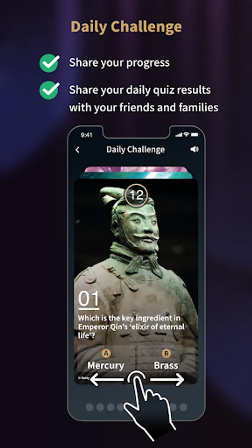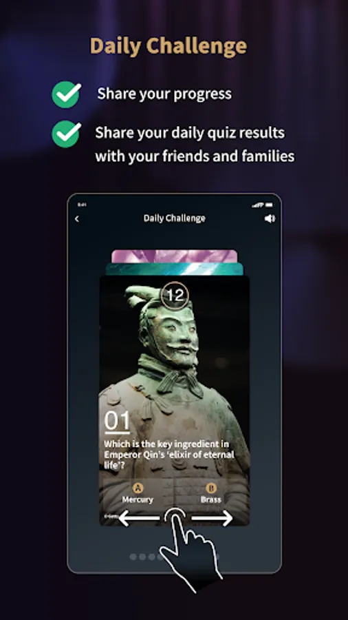 • Share your achievements, complete daily quizzes together with your friends