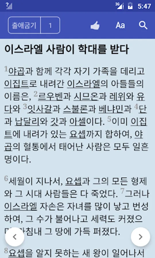 Korean Bible is a free Holy Bible reader for android devices, The app contains both "Old Testament" and "New Testament". It is useful for people to read the Bible who used Korean as native language.