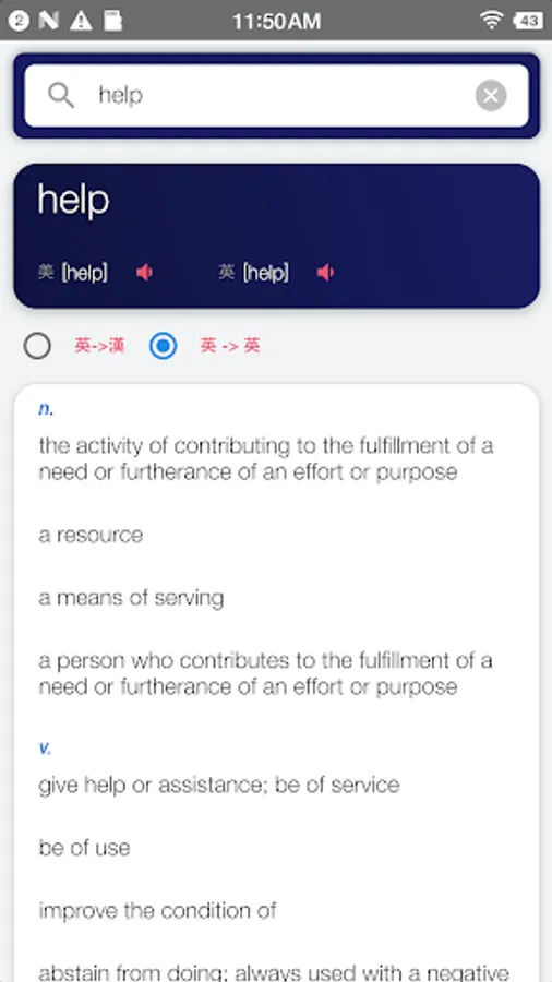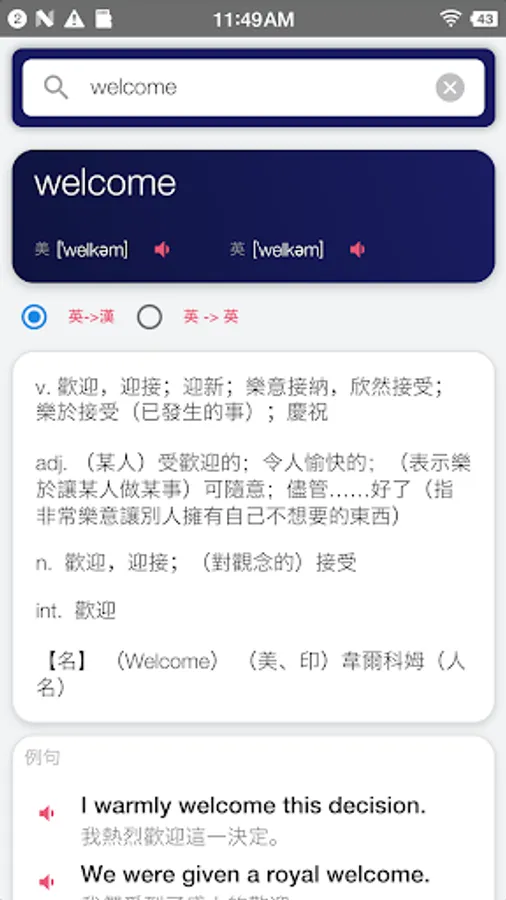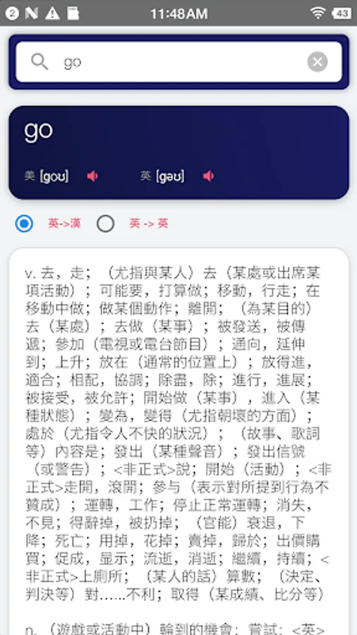 The Chinese English Translator App enables you lookup Chinese or English words. The translate result have definitions, examples and pronunciation.
