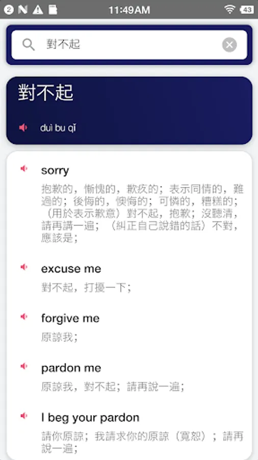 - Translate results with Chinese Pinyin or English phonetic, help you learn to pronunciation.