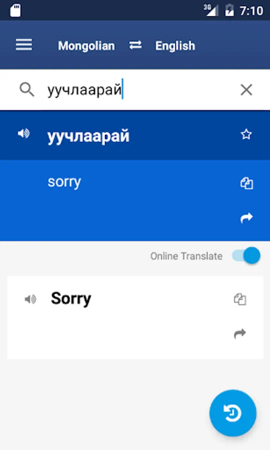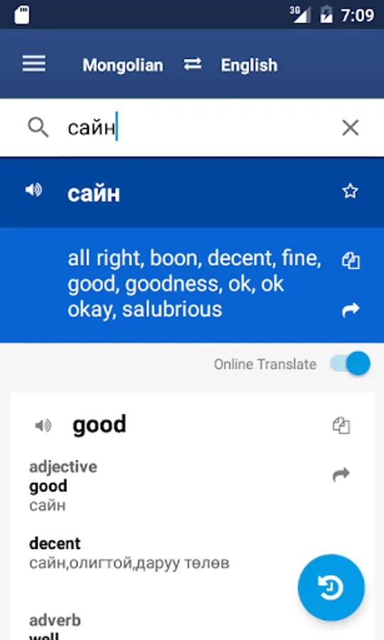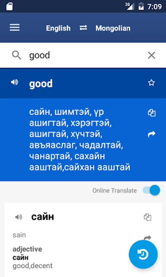 - Translate result with example sentences (Mongolian example sentences is not supported)