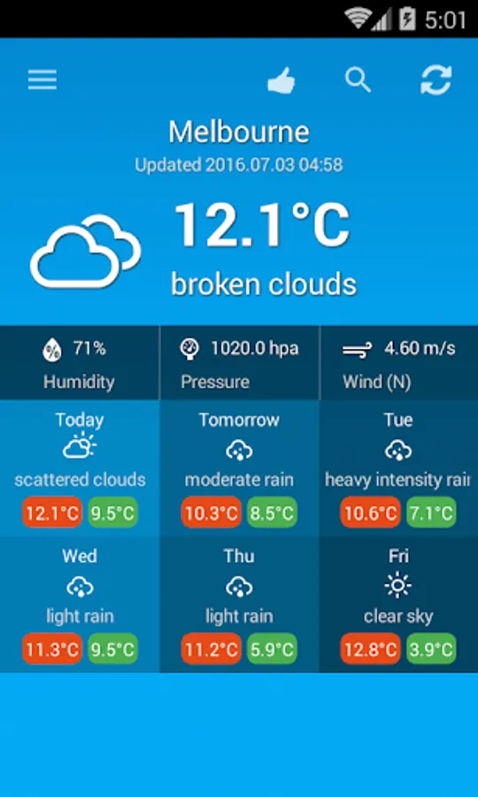 Australia weather forecast including high and low temperatures,wind speed, cloud speed and humidity.
