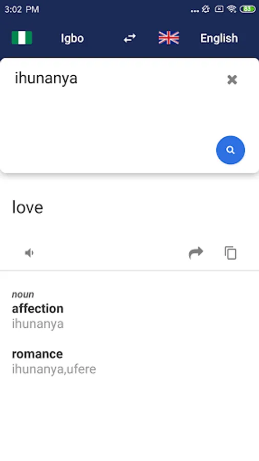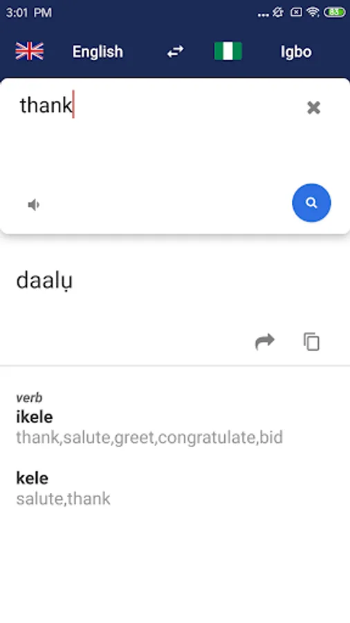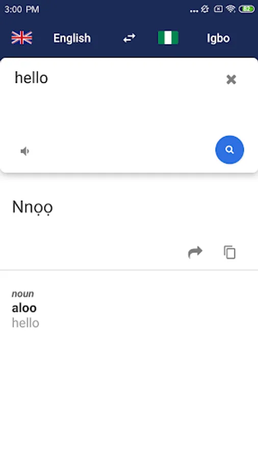 • Audio pronunciation - hear every English or Igbo translate result.