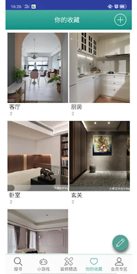 站上的图片、文章、視頻,可以收藏到内建文件夹,建立你的装修小图库,方便与设计师沟通居家风格