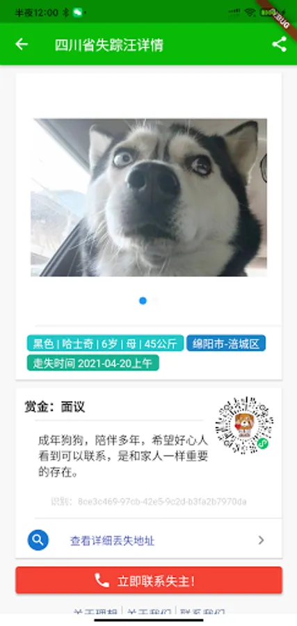 One of WeChat's most popular charity programs, "Seeking Dogs", logs into the App Store, a full native client version! Excellent interoperability design, no advertising, pure public interest. Provide one-stop tools to help make dog-hunting announcements on apps, applets, and our website. At the same time, we will spread quickly in the pet group under our line! I hope that our products can help you, help dogs, and finally, looking for a dog is not a dog revelation, don't write typos!
