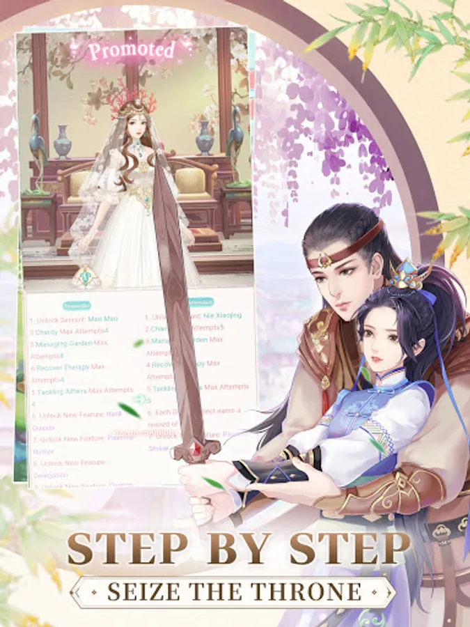 Step by step, finish dailies to get promoted gradually. How to become the Empress by starting with just a candidate? This is a battlefield for women, do you dare to fight?