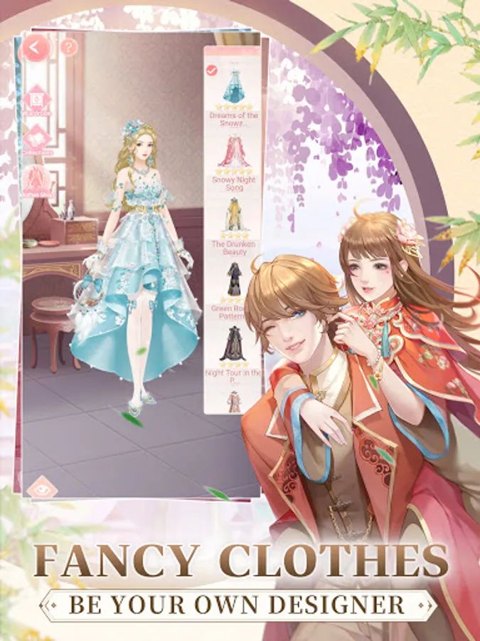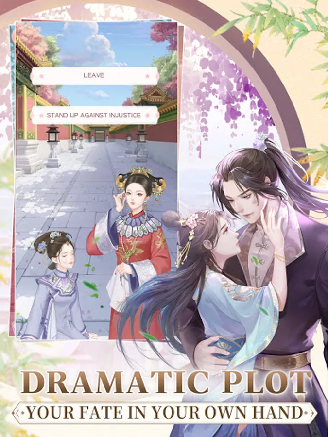 Despite the indifferent moonlight, characters in palace are sentimental. Dress up to meet lovers, and exchange gifts with each other, as well as your love. Nevertheless, your fate is not in your own hand. Among the four gentlemen in this deep palace, who is your true love?