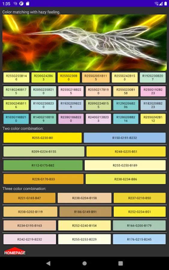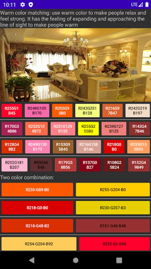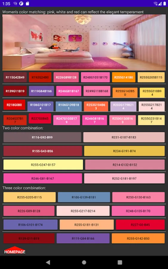 Function introduction: clothing color matching, home decoration color matching, webpage color matching, advertising design color matching, learn color matching, life is better.