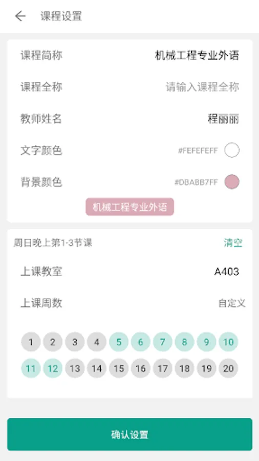 5. You can set the number of weeks for each class, such as all, alone, bi-weekly, and specified weeks
