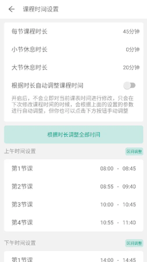 1. The number of courses in each stage of morning, afternoon and evening can be freely set