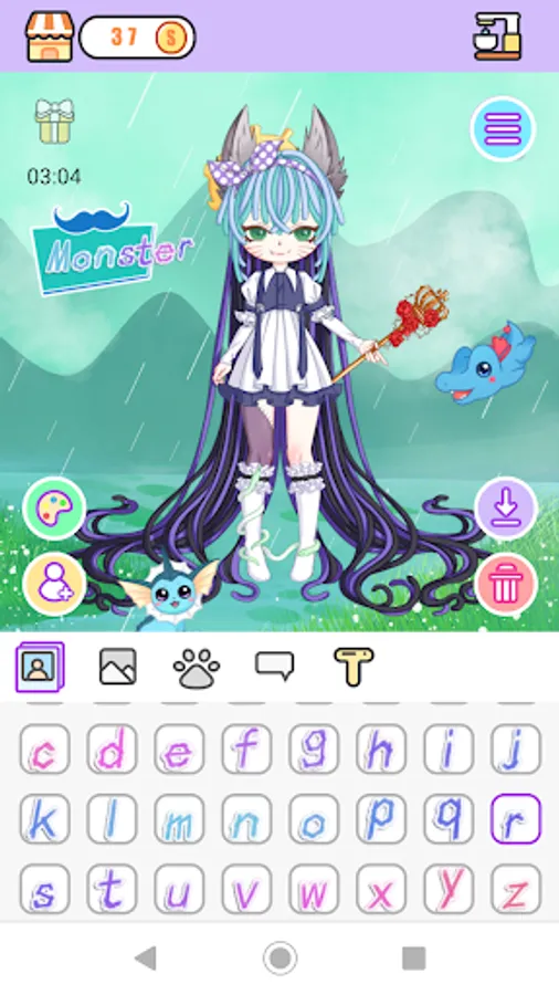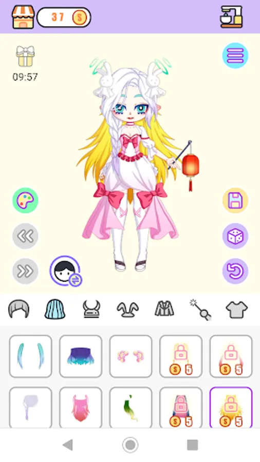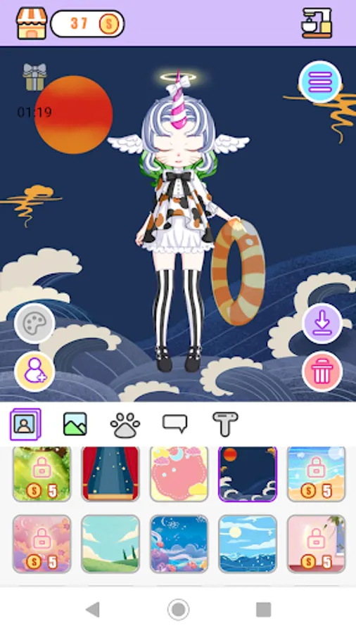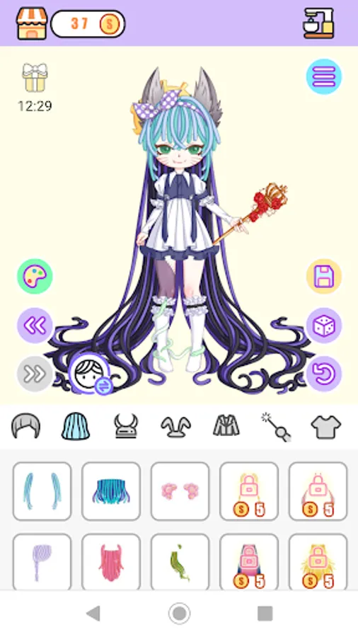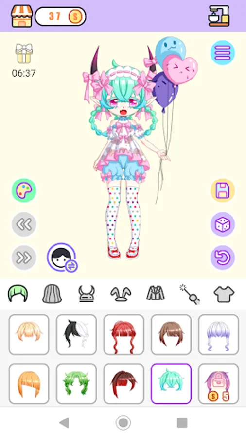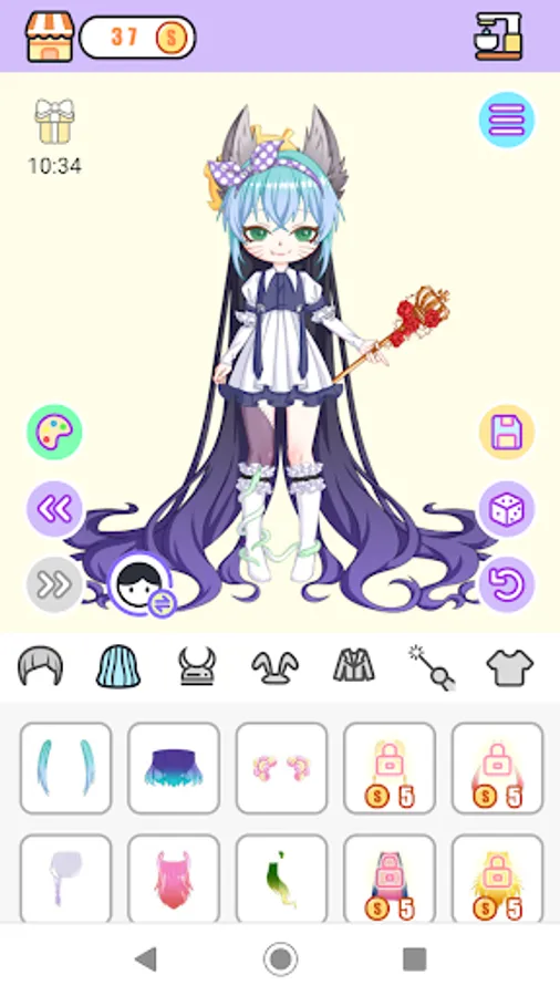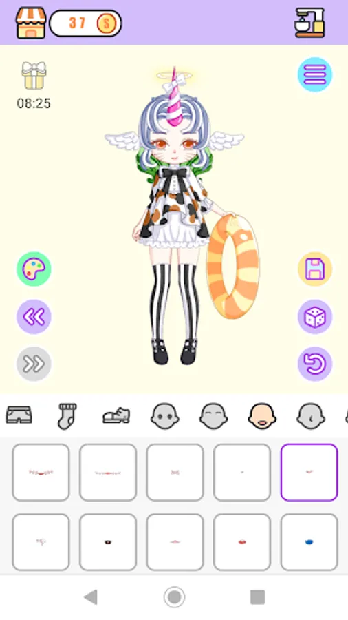 Skin color, hair, face, top, bottom, horn, clothes, sticker, etc.