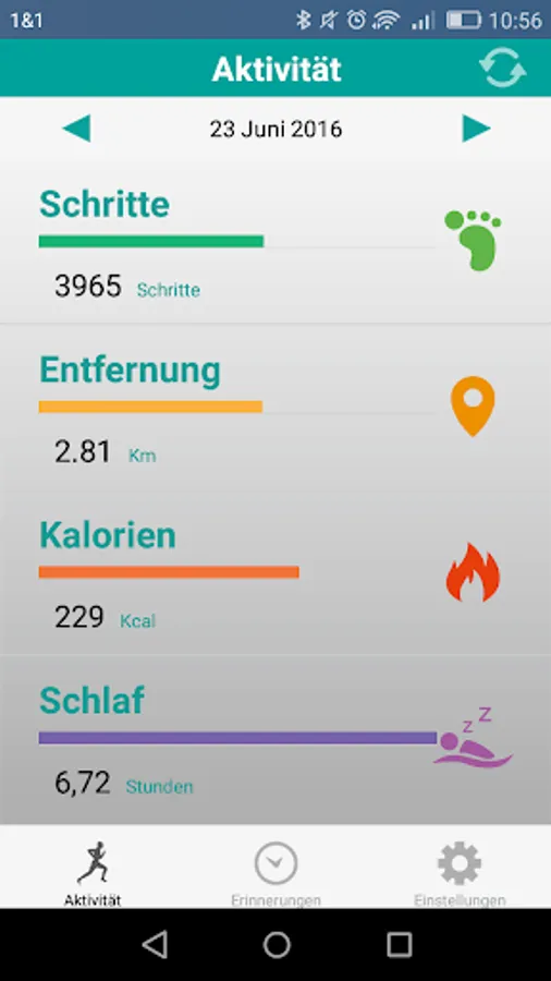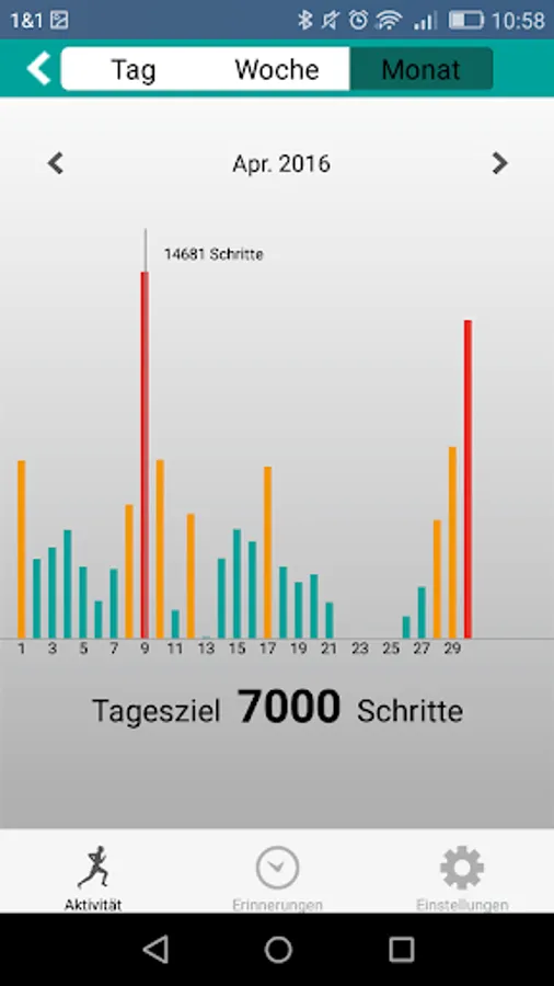 After synchronizing the training data, the My Fitness Pro App trend, in which you were active by day, week, month or year, in graphical form.