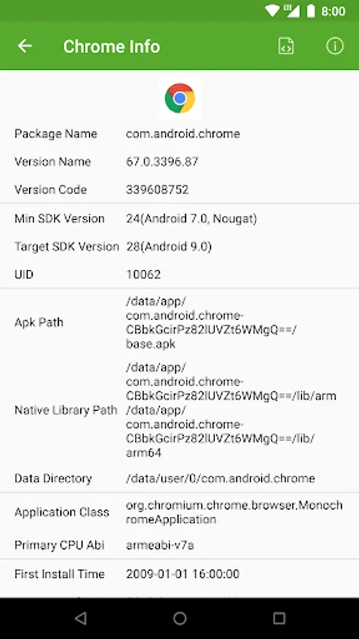 View app package name, version, uid, apk dir, so dir, data dir, first install and last upgrade time, component info and so on.