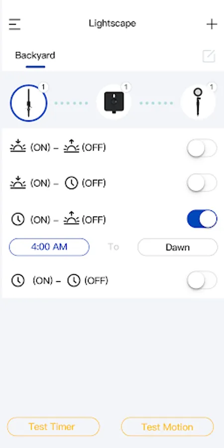 The Novolink LS app also allows you to create multiple ‘Zones’ of control, allowing for different lighting rules and schedules for various areas around your home or yard (ie. Front yard, patio, pool area.)