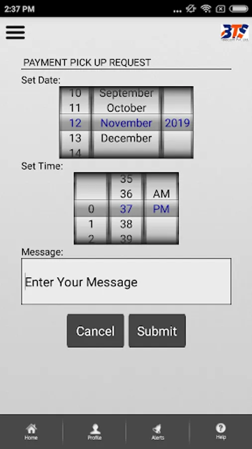 Subscriber can put in a payment pickup request with the company. A date and time can be selected through the option and the same is captured and conveyed to the collection team for further action.