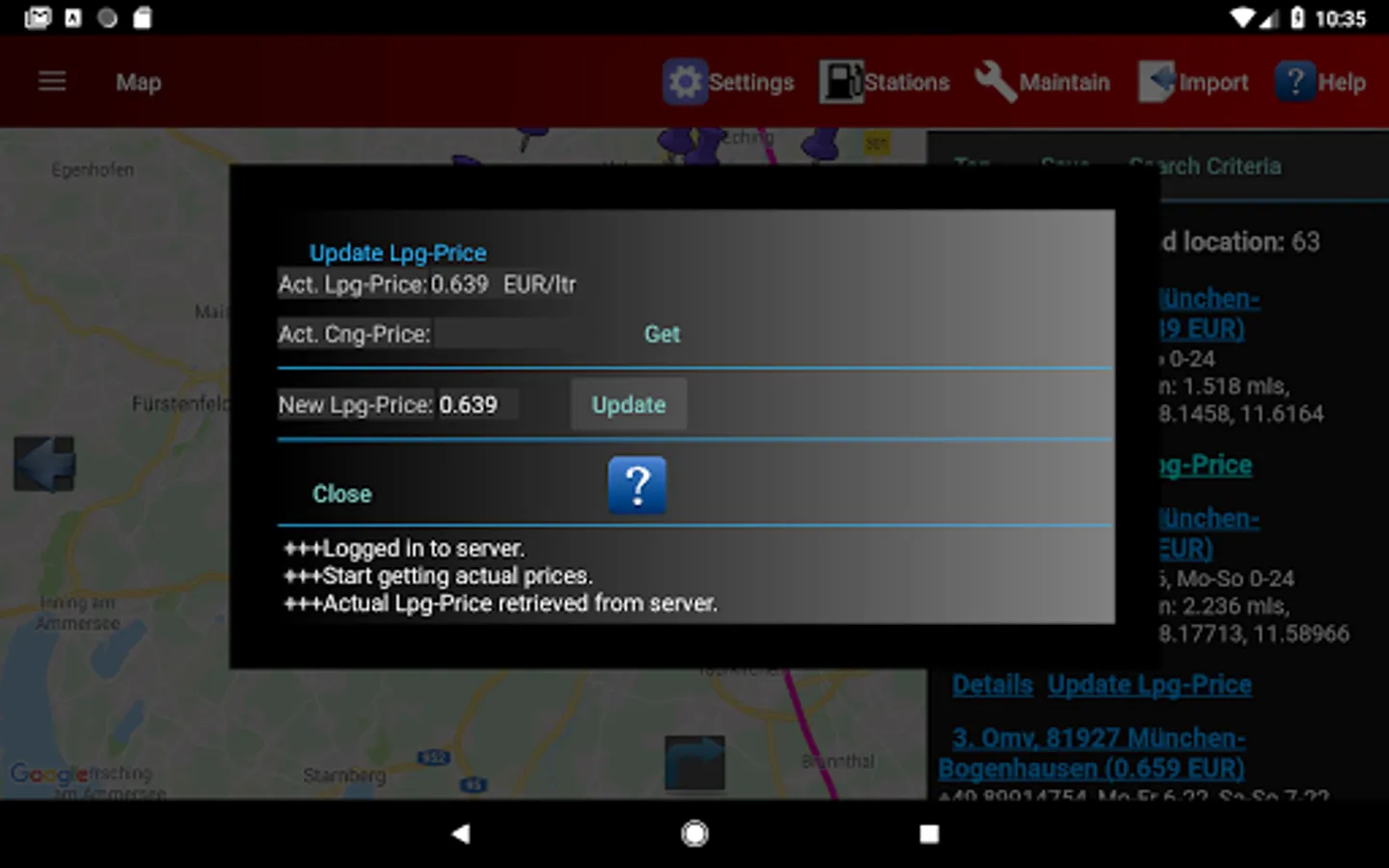 Cng/Lpg Finder Plus provides additionally maintaing station data. So in particalur the gas prices could be made up-to-date.