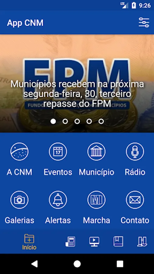 Another tool to approximate the CNM of municipal managers. The app brings the latest news from municipal movement, publications, information about the FPM of Municipalities and events of CNM.