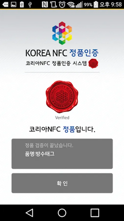 Korea can be certified as genuine precious NFC tags NFC activate the application.
