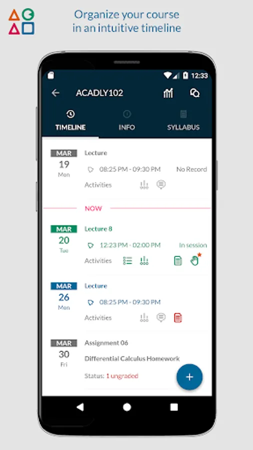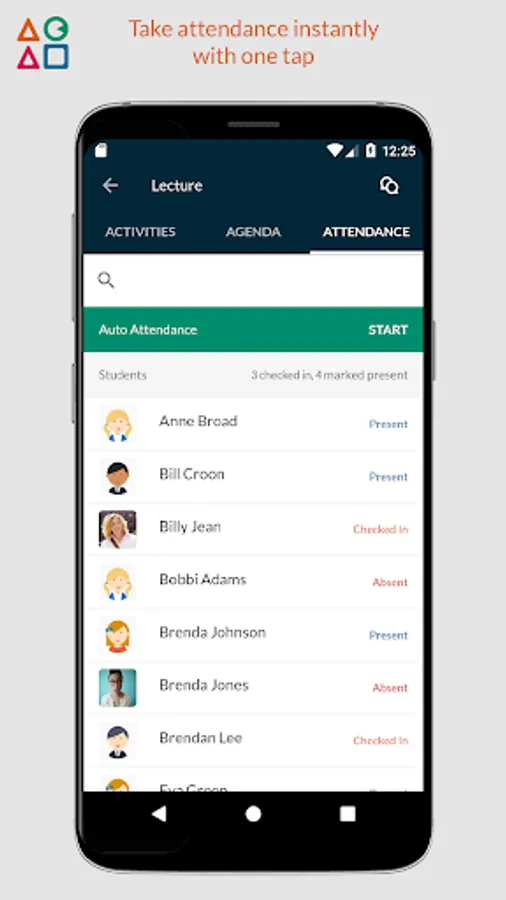 1. Attendance automation for in-person classes: Instructors can record attendance in in-person classes at the tap of a button using Acadly's mesh-network based attendance technology.