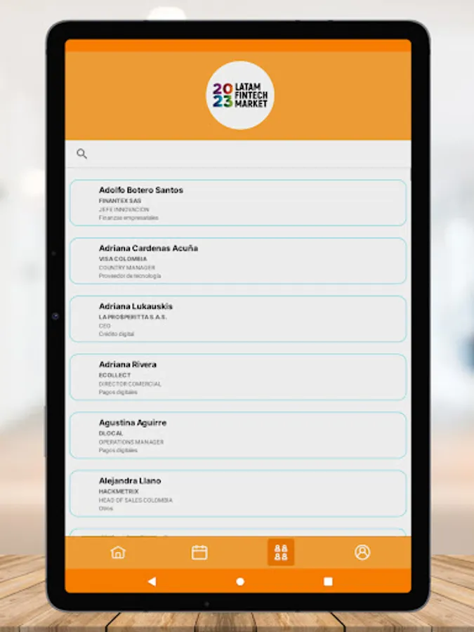 Have access to the information and exclusive network of people who attend the event each year. The application has a general list of people, who will be able to make contact with each other and schedule meetings in different rooms and at different times. It shows the sponsoring companies in their different categories, the speakers and description of their participation, the event's agenda and the list of exhibiting companies in the trade show.