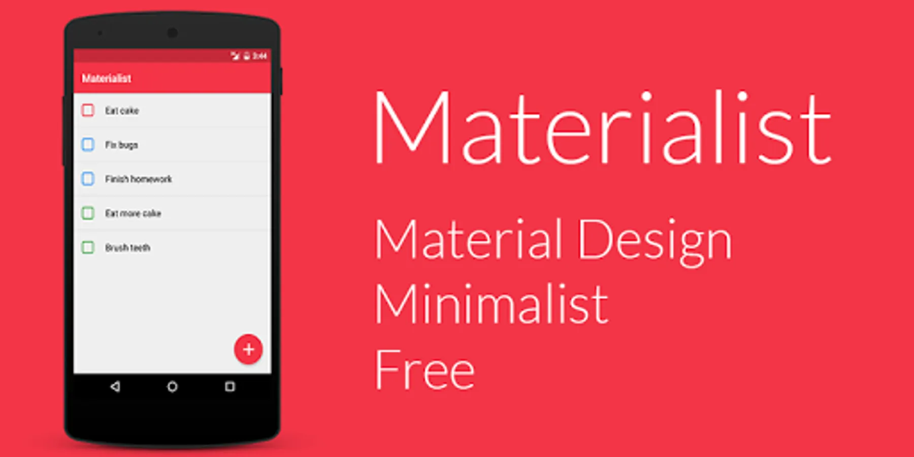 Materialist is a minimalist todo list for managing your tasks. It's free, has no ads and uses Material Design.