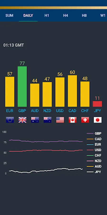 Our app also offers a summarized data of the currency strength, so you can easily track and compare the performance of multiple currencies. And with our alert notifications, you'll never miss a trading opportunity again.