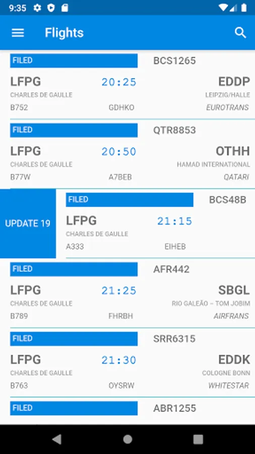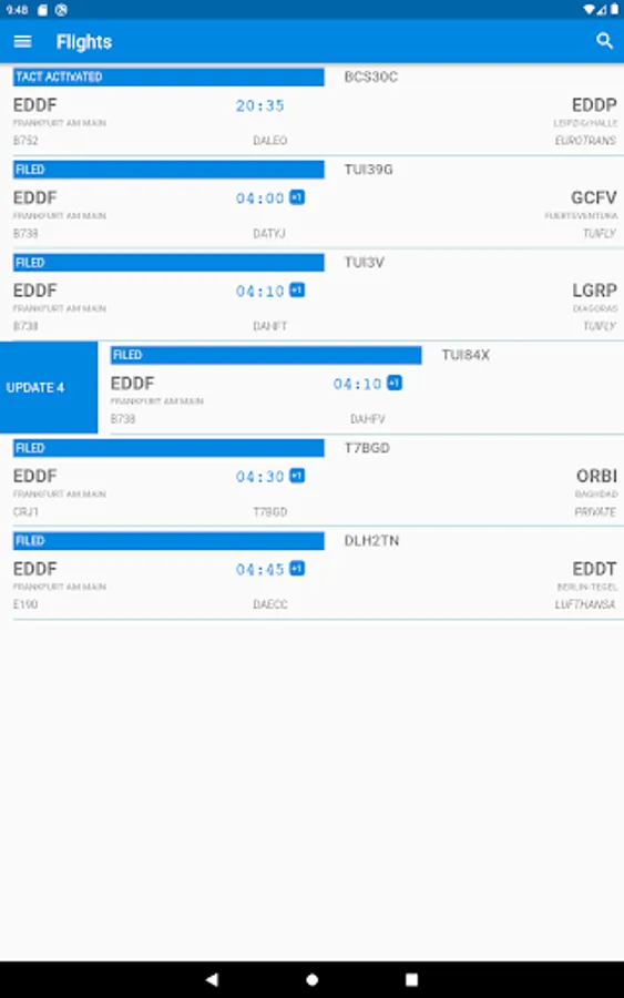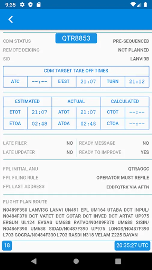 Live updating ensures you have the latest data snapshot for your flight, giving you the same information as the ATC tower.