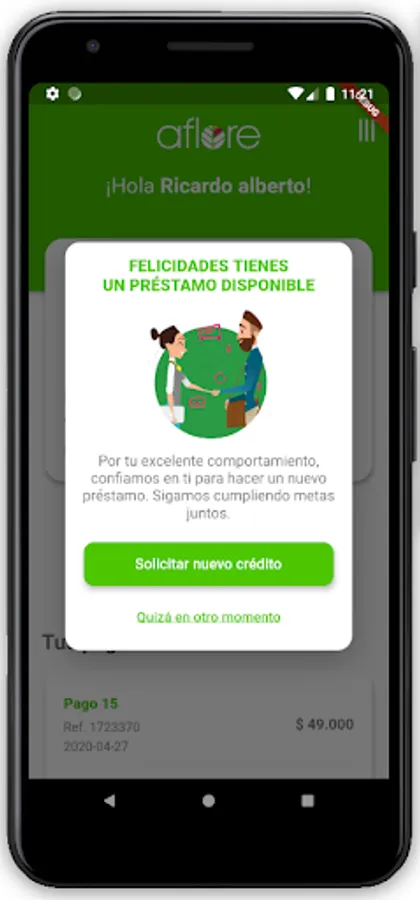 - Annual interest rate of 26.39% + cost of the FGA Guarantee Fund that varies from 9% to 20% according to the client's characteristics