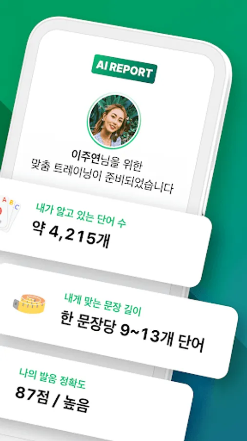AI accurately analyzes the length of English sentences you can actually speak and recommends appropriate sentences based on this. You can improve your English skills most efficiently and quickly.