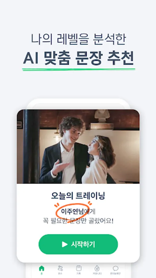 Everything is ready to speak English. English expression lectures, pronunciation, even words. Don't worry about what to study. AI recommends the content you need most to improve your English!